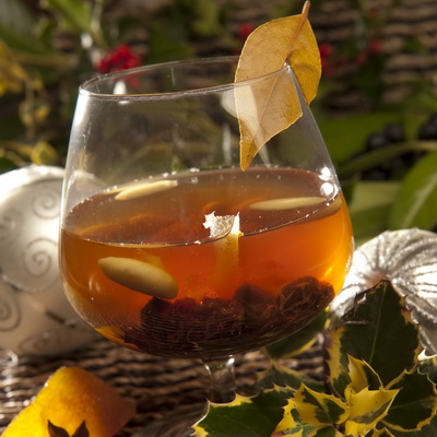 Læg det hele i et glas sammen med nellikerne. Hæld cognac over og dæk det til. Lad det stå i et døgn.